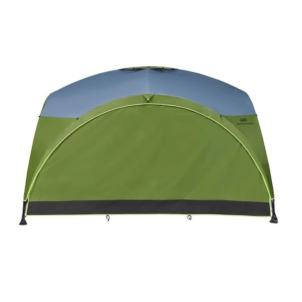 What makes the Performance Event Shelter different to the rest of the Coleman’s range is the specification of the material used; for this top end shelter they have used a thick 150D material with a 3000mm waterproof rating to give the gazebo a longer lifespan and a more premium feel. This model is also completely waterproof unlike the normal version. The seams are critically taped you won’t get any water dripping through the stitching to make sure everything inside the shelter remains dry. Other high-end features include additional storage pockets throughout the shelter for storing the walls or equipment in and additional roof ventilation with its own sky windows. As the Performance Shelter comes with storm straps all the way around the tent, this makes it more stable in British weather.
