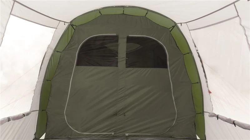 The bedroom compartment is made from Easy Camp’s sleep tight material to reduce early morning light and hopefully not wake you up when the sun rises. The Inner also has storage pockets built into the tent allow you to locate torches and phones in the middle of the night. Windows are located on either side of the tent to give a view outside and curtains can toggle up into place to provide privacy when needed. Covered ventilation panels are located behind the bedroom section at each end of the tent to increase airflow and help reduce condensation. A toggled inner divider splits up the bedroom section and can be easily removed to make one big sleeping space.