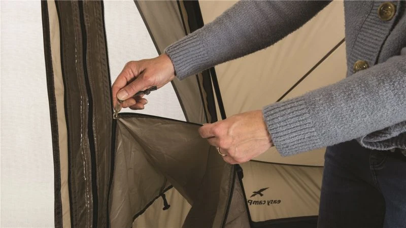 The inner workings of this tent consist of a strong steel pole frame and a strong 185T polyester fabric, rounding off with a fully sewn-in polyethylene groundsheet to halt any invading insects and water ingress. Easy Camp’s polyester fabric has been fully wind and rain tested, the latter up to 3,000mm hydrostatic head.