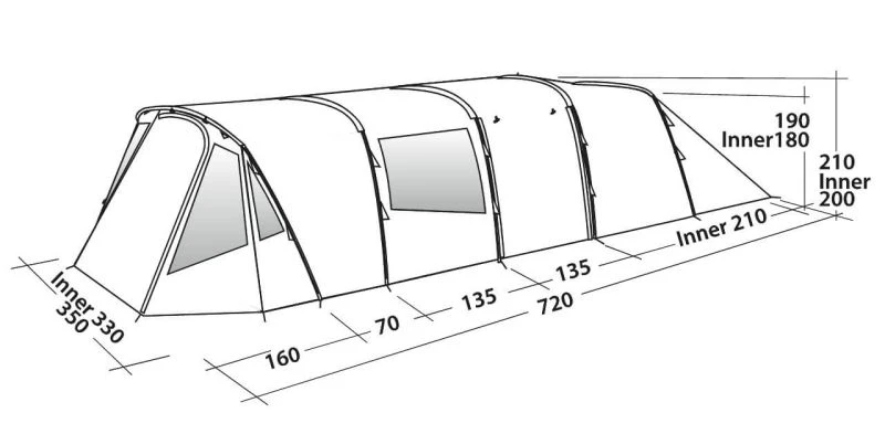 A drop-down front door into the living area gives trip free access into the tent and makes it easier for pushchairs to enter. This same entrance has a mesh door built into it so you can increase the airflow inside the tent without having any insects join the party. The pre-angled poles help to increase the internal headroom and make the awning feel more spacious in relation to the floorplan.