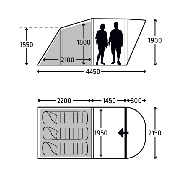 - Covered entrance – gives a sheltered entrance to your tent, which prevents rain from dripping into the living area