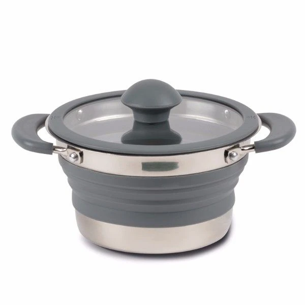 The Kampa collapsible saucepan is available in a choice of three sizes. All the pans collapse and fold down making them ideal to pack for use on your camping trip.