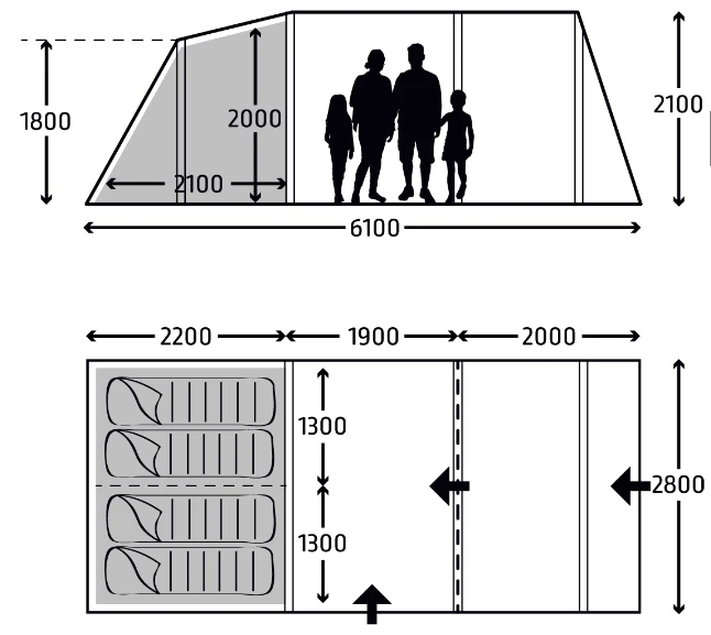 - Covered entrance – gives a sheltered entrance to your tent, which prevents rain from dripping into the living area