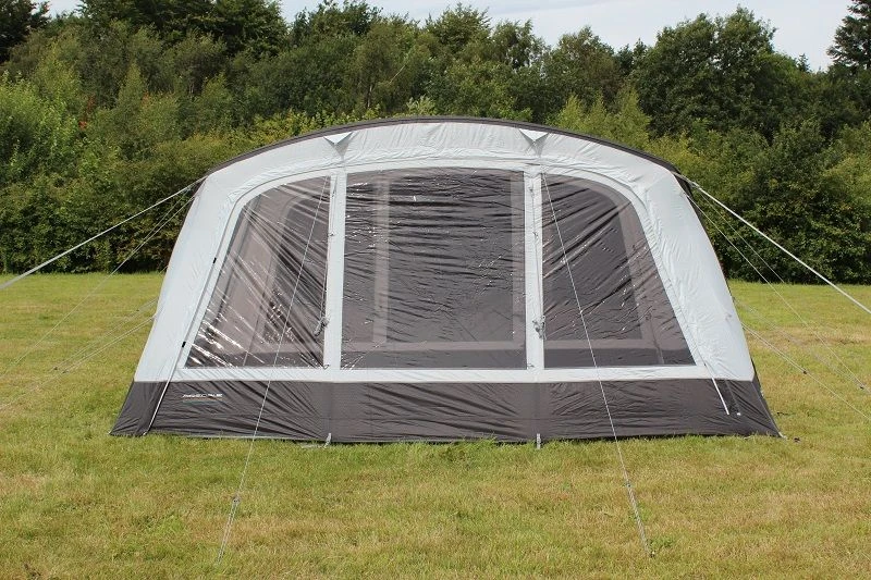 The Outdoor Revolution Airedale 6S & 6SE Front Awning is designed to zip on to the front of this model, in order to considerably extend usable living or storage space from the integral porch area, providing a windowed utility space for cooking or relaxing, with an excellent vista of the outside world and complete protection against the elements, to maximise enjoyment on rainy days. This tunnel canopy incorporates our famed oxygen airframe inflation system, utilising a single inflation point dynamic speed valve, making pitching swift and effortless; an exclusive pressure relief valve prevents damage to the tube by expelling any excess air, typically caused by overinflation or sudden changes in the ambient temperature. All of our valves are discretely concealed by a velcro cover. We have also included numerous high visibility guylines and a compact carry bag with this accessory.
