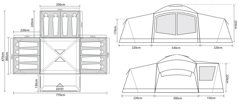 - Poles: Oxygen AirFrame & Fibreglass Poles (Bedroom/Awning Sections)