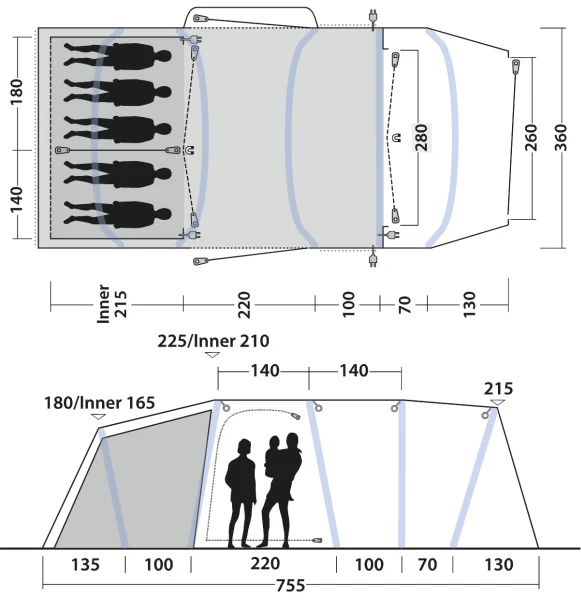 - Reliable, easy-to-operate inflate/deflate valves conveniently placed outside the flysheet