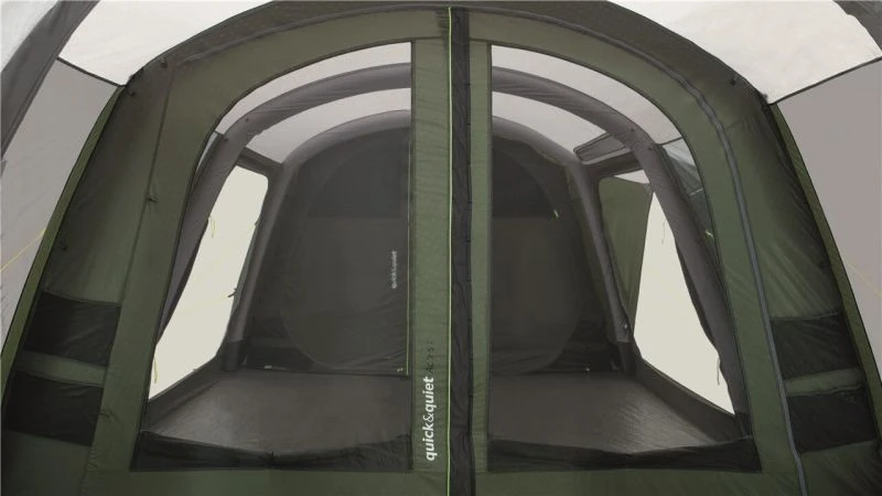 The Jacksondale uses Outwell’s Rigid Air System for ease of pitching and stability. You can happily erect this tent within 8/9 minutes (as seen in our Attwoolls Pitching Videos). There are two main bedrooms at the back of the tent that can comfortably accommodate 4 people and will sleep up to 5. The Dark Premier Bedrooms are now even darker thanks to a darker material above the inner; a new Rear Ventilation System increased airflow and helps reduce condensation and can be covered to keep the bedroom nice and dark.