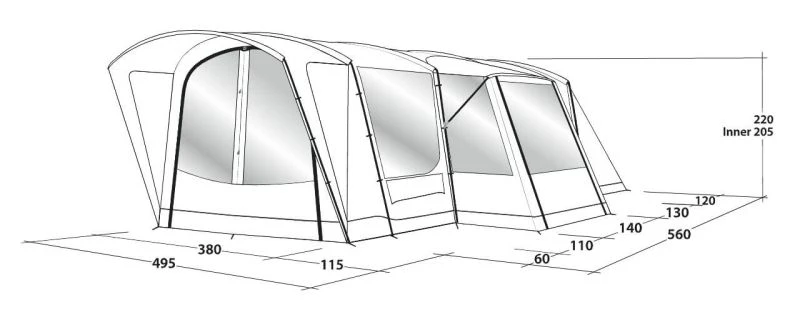 One of the most impressive aspects of the Montana 6PE is the headroom. There aren’t many tents on the market which can compete with it and this helps to make the tent feel bigger than it is and allow you to move furniture closer to the sides as the walls are slightly more vertical. Throughout the tent there are large tinted PVC windows to give plenty of light into the tent and visibility out; below the window are zip up curtains to get privacy when needed. An additional front awning can be added onto the tent to make it bigger and give you that additional third zone for cooking or storage.