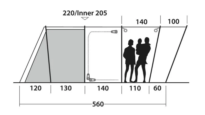 Not only does the tent come with high-vis guylines, but also ‘Storm Ties’ Velcro around the 19mm steel poles to make sure the fabric and poles are tensioned together. Outwell have really gone to town on including things like their own HookTrack System to give you the option to have a hanging point for lights or storage pockets throughout the tent. ‘Quick & Quiet’ Access doors are located on the bedroom compartment and the living room door. Premier Bedrooms which are nice and dark but have a Rear Ventilation System built in to increase the airflow and help reduce condensation (this can be covered to keep the bedroom nice and dark if needed).