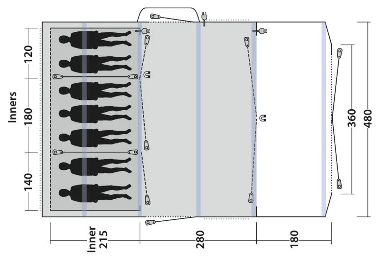 - Reliable, easy-to-operate inflate/deflate valves conveniently placed outside the flysheet
