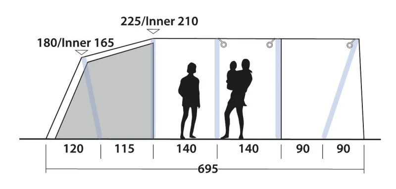 - Three zones provide a large family with wet room, dry living room and bedroom. Vertical front wall for enhanced practical living space and easy zip operation