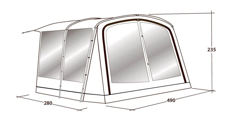In total there are 7 sizes of the front awning, so it doesn’t matter what tent you have, there should be an awning to fit. Each size has about 20-30cm of adjustment in the width so you can really pin point what is the best fit for your tent. The smallest size starts at 250-270cm and sizes go all the way up to 470-490cm. Why not have a look at our review video to get a better idea of what the Universal Awning looks like?
