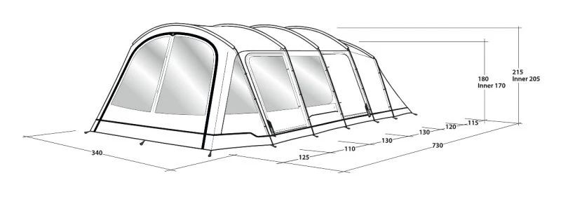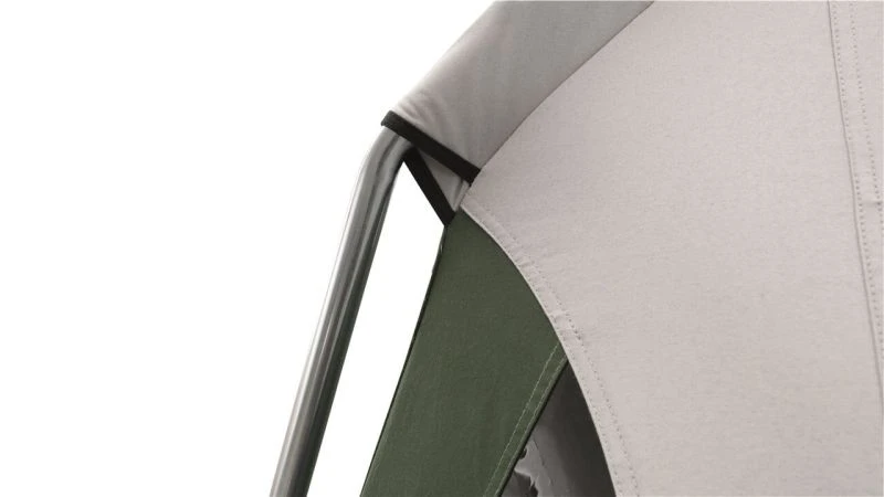 Not only does the tent come with high-vis guylines, but also ‘Storm Ties’ Velcro around the 19mm steel poles to make sure the fabric and poles are tensioned together, while storm straps are provided front and back to increase stability. Outwell have really gone to town on including things like their own HookTrack System to give you the option to have a hanging point for lights or storage pockets throughout the tent. ‘Quick & Quiet’ Access doors are located on the bedroom compartment and the living room door. Premier Bedrooms which are nice and dark and have a Rear Ventilation System built in to increase the airflow and help reduce condensation (this can be covered to keep the bedroom nice and dark if needed).