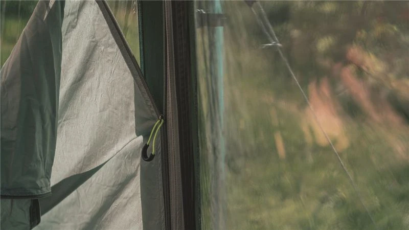 Throughout the tent there three main zones for cooking, living and sleeping. Each zone flows easily into the next and can be positioned to your desired setup. Large tinted PVC windows give plenty of light into the tent and visibility out; below the window are zip up curtains to get privacy when needed and can be adjusted to give as much or as little light as you want. If the tent isn’t big enough an additional front awning can be added onto the tent to make it bigger while retaining a more manageable pack size & weight.