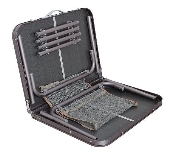 The ‘Cleeve’ folding table from Quest Leisure features their exclusive duratech table top, adjustable levelling feet for use on uneven ground and can be used at two different heights thanks to the adjustable legs. The table top folds in half and the legs fold away and are packed under the table top into its own carry case. The carry case has an integrated handle making it easier to transport and to store when not in use. The small size makes it great for camping, outdoor picnics and even just using in the garden at home. The table has a useful and handy under table storage net which is ideal for magazines, newspapers or light utensils.