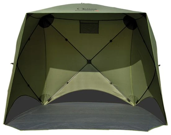 The premium Quest No-Chill mesh curved panels are built in and these help keep you warmer in the wind and cooler in the sun but allows the air to flow through keeping it fresh at all times. It also features two windows at the top of the unit with external blinds allowing you more or less shade/privacy when required.