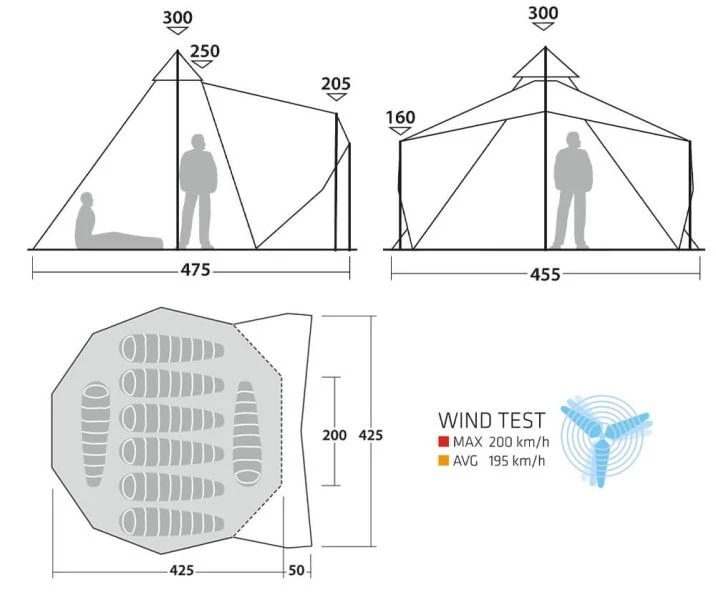 - Flysheet: HydroTex HD RS, 75D polyester 190T, Ripstop, Fire retardent, 100% polyester