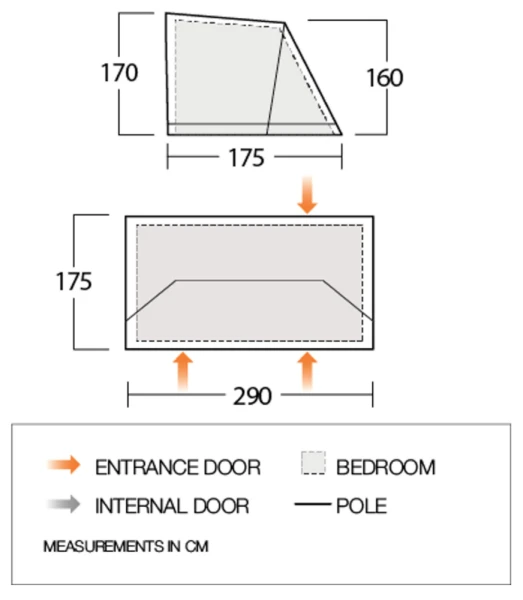 The Studio is made from Vango’s Sentinel Elite fabric to match both the polyester and polycotton tents. Because the studio zips onto the tent there is a good seal against the weather and provides a solid connection to make it feel like part of the tent rather than an addition. The annexe comes with an Alloy pole which helps to keep the pack size down and retain stability.