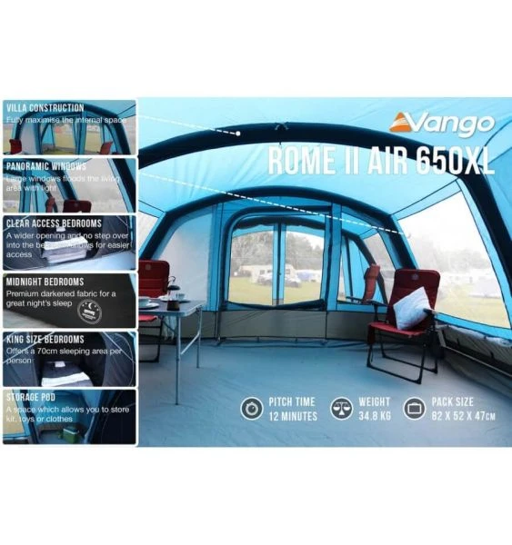 - Vango AirZone™ – High and low level ventilation panels combine to create a comfortable flow of air through the tent. Air circulation is essential for reducing condensation