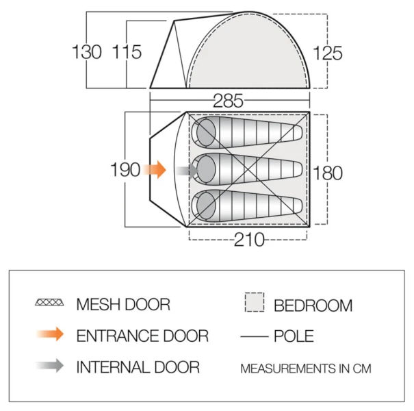 - Inner First Pitch – Simple and quick to pitch. Allows the tent to be used without the flysheet in warm climates