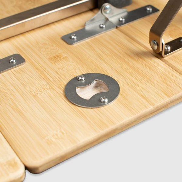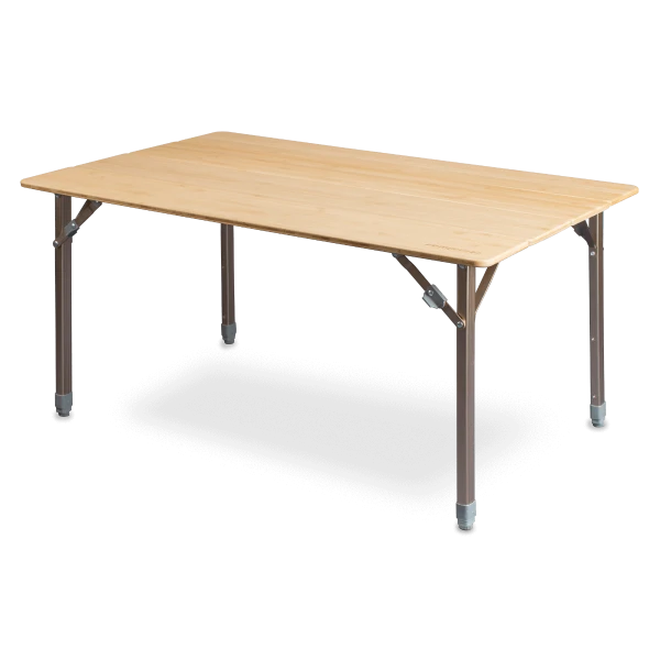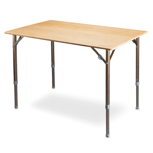 Zempires Kitpac large table features a natural bamboo smooth surface table top which looks fantastic. It is easily folded into 4, and neatly fits in a durable carry bag. The table legs can be individually adjusted using the push button leg adjustments giving you the extra comfort and perfect height you require.